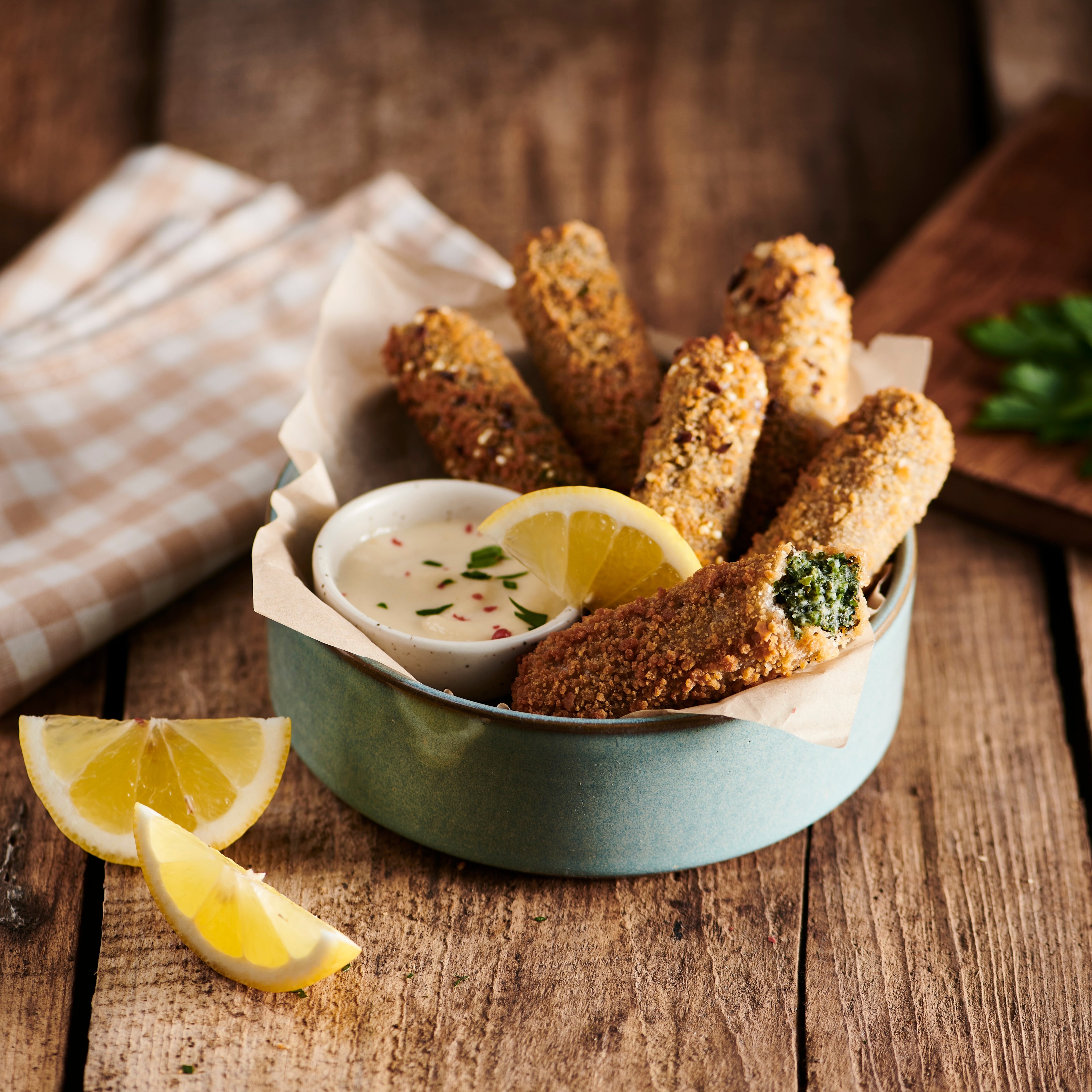 Under their fine and crispy breading, our sticks reveal a light heart with a delicately iodized vegetable taste.