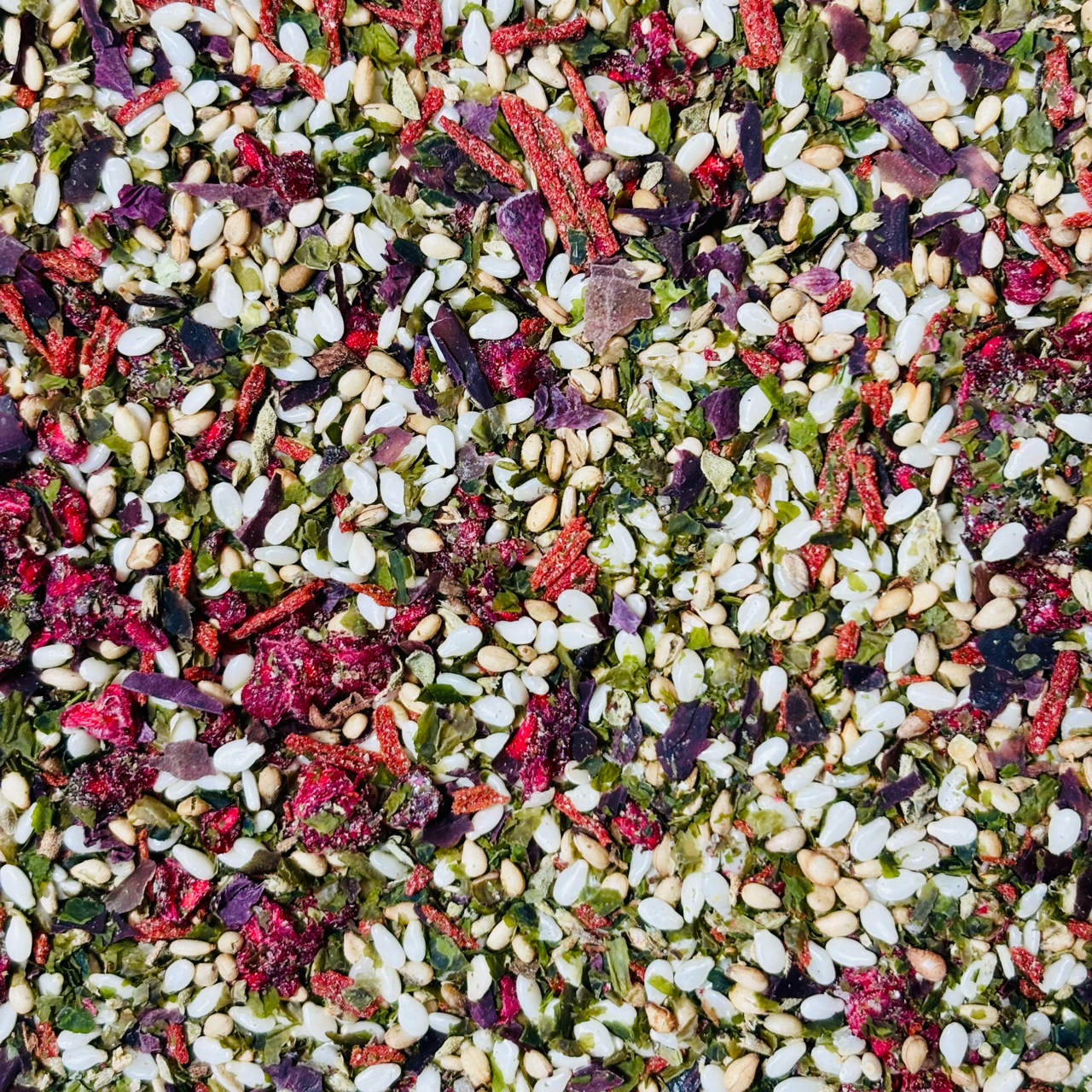 Inspiré par le furikaké japonais, nous proposons des saveurs uniques de ce mélange raffiné de sésame et d'algues.